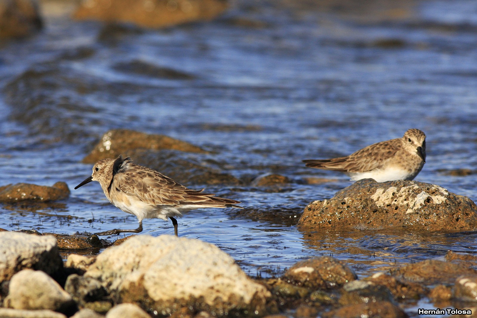 También era la primera vez que visitaba el Parque Nacional Laguna Blanca y fue grato hacer primeros avistajes a este playero como a otras aves; deambulaban entre las rocas y las aguas someras en busca de pequeños invertebrados con los que se alimenta.